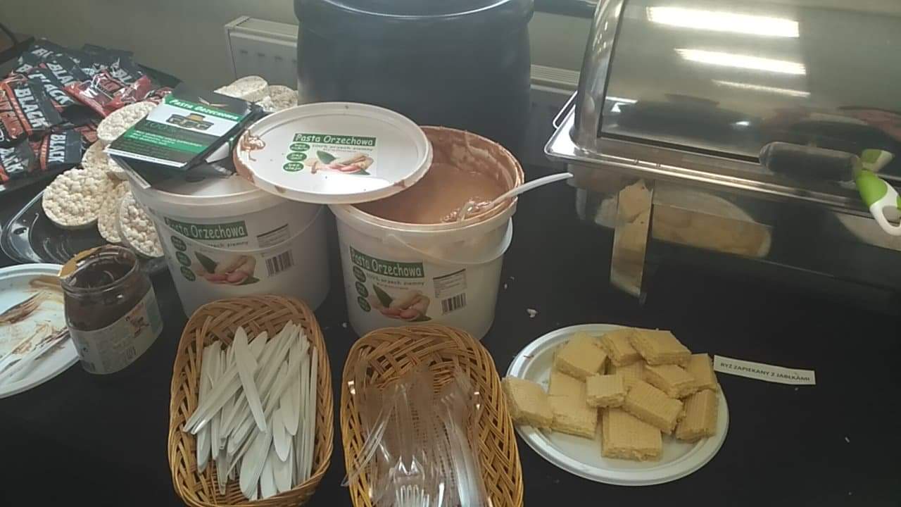 Bufet był jednym z największych atutów zawodów. Zawodnicy mogli swobodnie podjadać przez cały czas trwania wydarzenia. Serwowano różnorodne dania, w tym Nutellę, masło orzechowe, naleśniki, mięsa i pierogi. Były także napoje – woda, kawa, herbata, energetyki i żelki. To przebiło wszystko, co wcześniej widziałam.